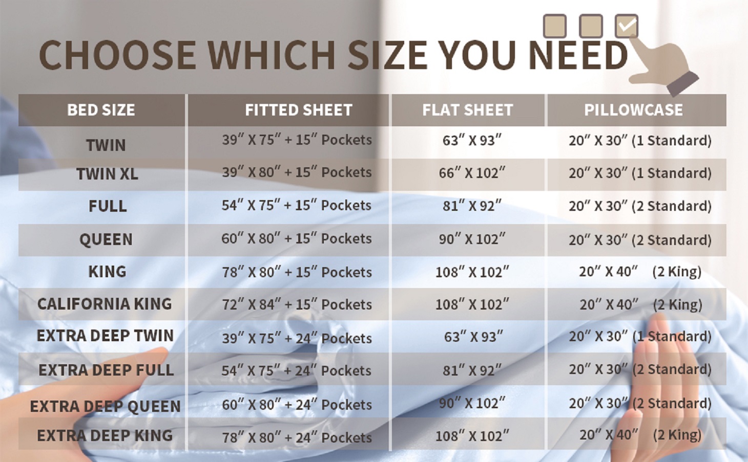 Our premium fitted sheet with deep pocket can stretches up to 16 inches, pull snugly over any mattress up to 16 inches effortlessly and simply, go neatly round the corners to stay in place.